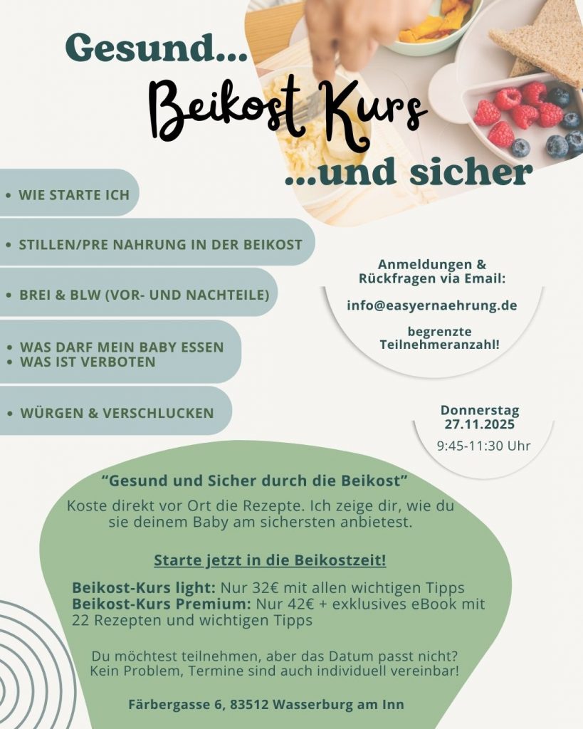 2. Gesund und sicher durch die Beikost (1 Termin ca. 90 Minuten kleine Gruppe – 27.11.2025 um 9:45 Uhr)