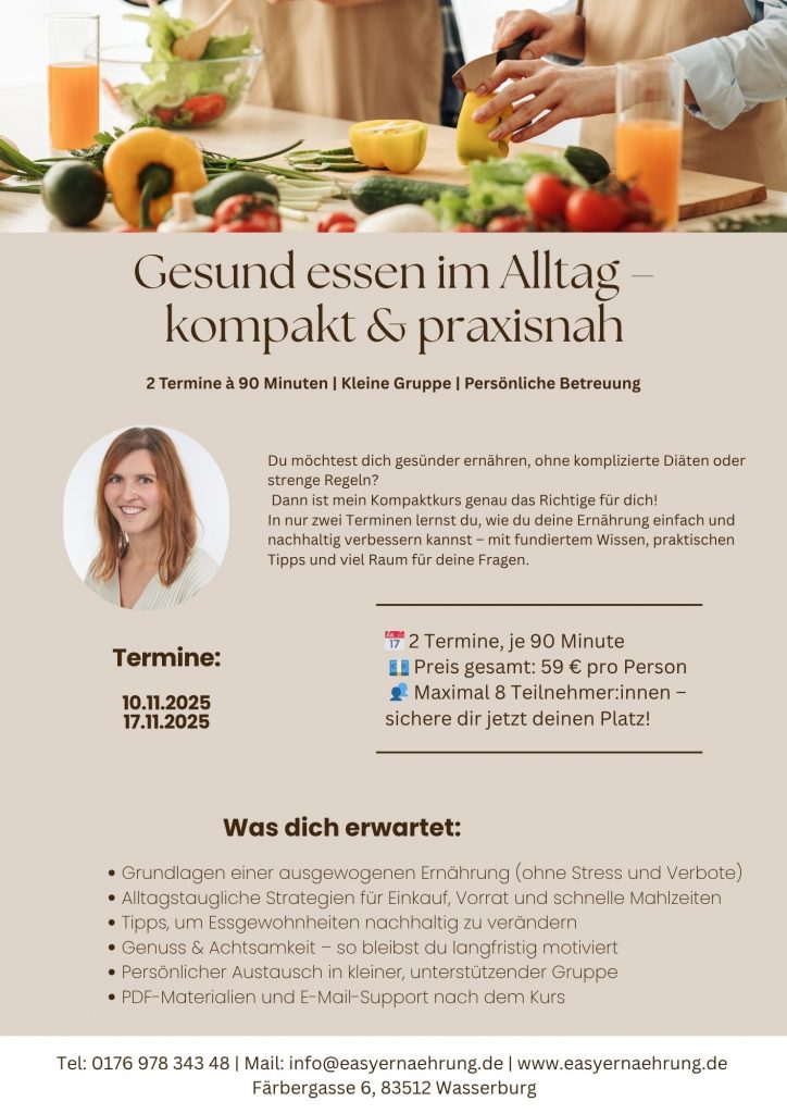 1. Gesund essen im Alltag – kompakt & praxisnah ( 2 Termine á 90 Minuten – 10.11.2025 + 17.11.2025 um 17:30 Uhr)